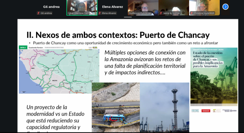 En ese mismo marco, Gamboa señaló al Puerto de Chancay como un caso emblemático de las contradicciones que enfrenta el país: una obra de alta tecnología que reduce el tiempo de transporte entre el Pacífico y Asia de 35 a 23 días, mientras el Estado no pudo fiscalizar el puente que une el distrito de Chancay con Lima, cuyo colapso, en 2025, causó tres muertes. Junto con la Universidad del Pacífico y la Universidad de Clark, DAR publicó recientemente un reporte que advierte sobre la falta de planificación territorial ante las rutas de conectividad con la Amazonía, con una sobreestimación de los beneficios y una subestimación sistemática de los impactos ambientales y sociales.